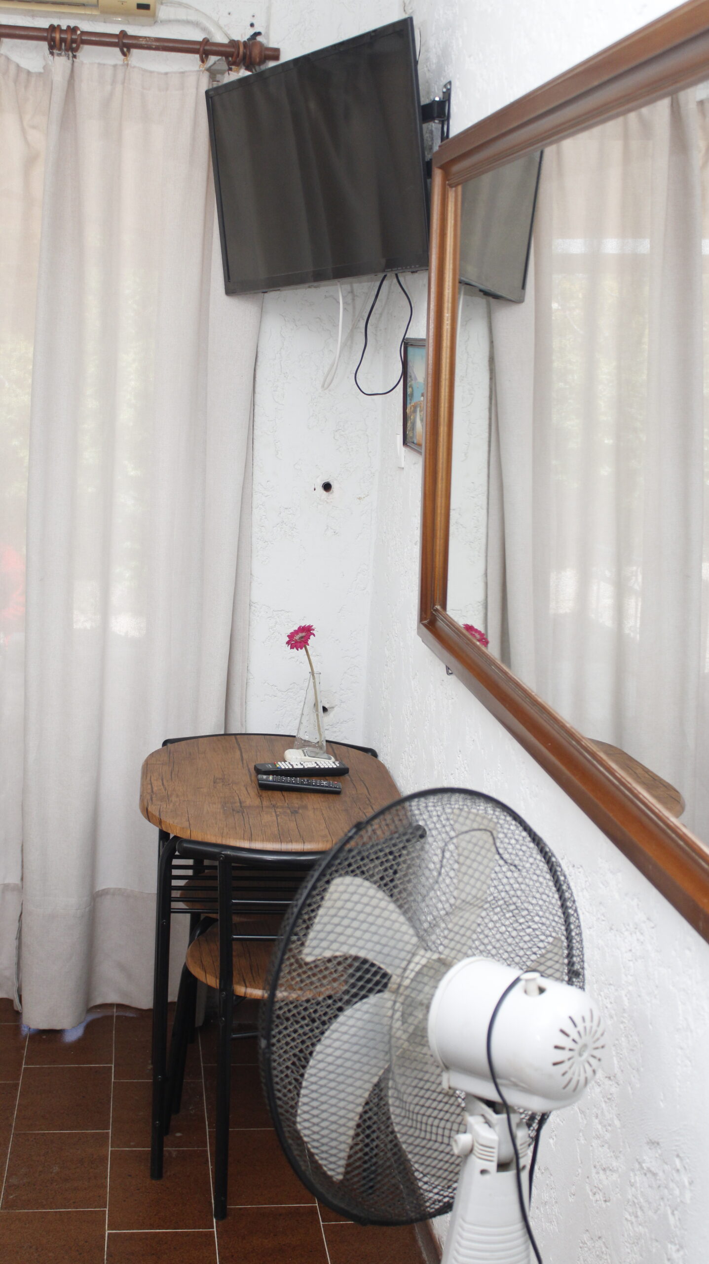 - Ανεμιστήρας δαπέδου και οροφής, σιδερώστρα με σίδερο και απλώστρα.